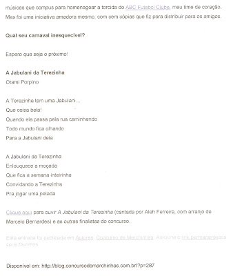 Caros amigos torcedores do ABC, não vamos pensar no pior, o futebol é imprevisível, quem sabe se no próximo domingo não estaremos voltando à liderança da competição. Temos um plantel que nos faz acreditar numa recuperação na pontuação da tabela de classificação. Não vamos pensar que essa moçada desaprendeu de jogar da noite para o dia; o que está faltando é trocar os sapatos à moda Luís XV, por uma alpercatinha de solado de pneu fabricada aqui mesmo no Rio Grando do Norte. Nosso treinador é competente e dedicado, já mostrou o seu valor durante o ano de 2010, com um plantel bem inferior tecnicamente ao atual. O que não se deve fazer é entrar em campo pensando que já se pode gastar por conta o bicho pela vitória. O respeito ao adversário deve estar em primeiro lugar, quando se vai para uma disputa. O jogador deve entender que o torcedor conhece de futebol, e sabe muito bem separar o joio do trigo, ao analisar o comportamento do atleta durante uma partida. Vamos esperar um ABC diferente contra o América no próximo domingo, jogando com raça e determinação. Que os atacantes passem à bola ao companheiro melhor colocado, com maior possibilidade de marcar o gol; do que pensar em ser o artilheiro do ABC, chutando muitas vezes sem o posicionamento adequado para acertar o arco adversário. Eu confio na moçada, vamos acreditar na reabilitação da nossa equipe. Um abraço Frasqueira. segunda-feira, 7 de fevereiro de 2011
